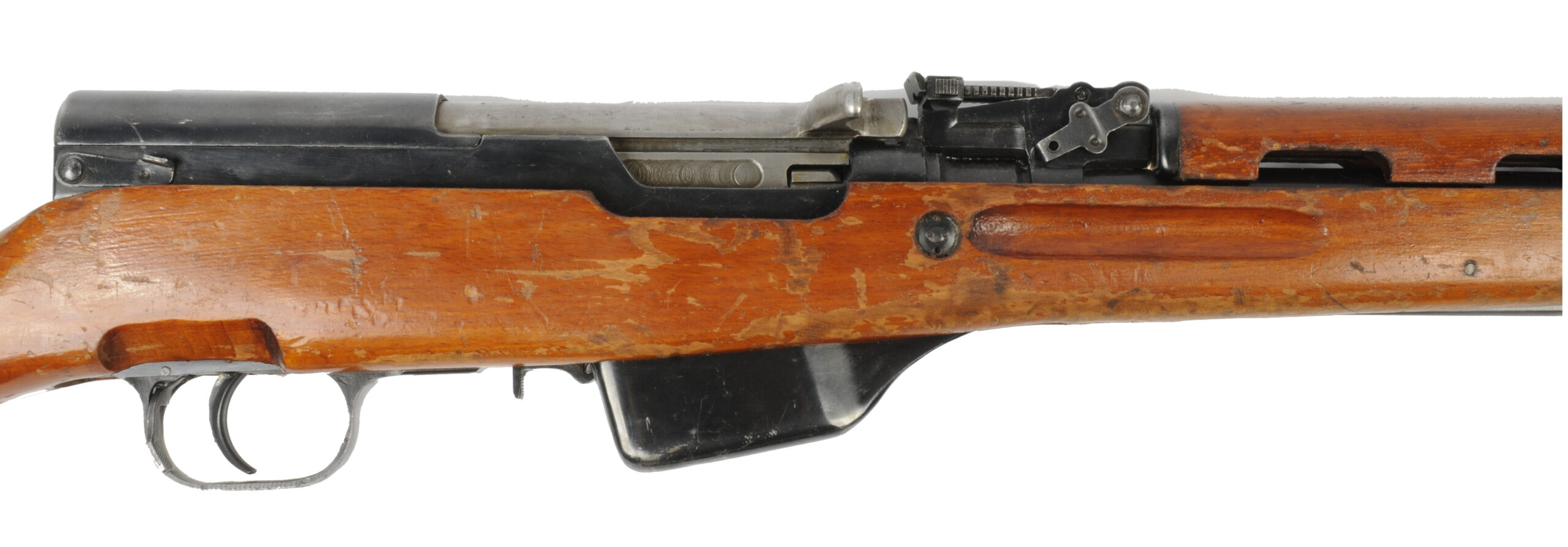Loaded via stripper clips, the internal magazine keeps true to the SKS’s original military configuration.